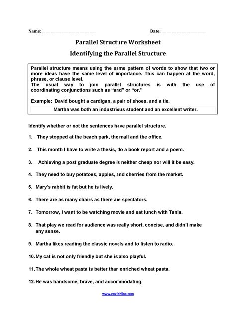 Parallel Structure Worksheet. Web parallel structure (also known as parallelism) is an efficient way to organize a series (a list) in a sentence. Web this handout describes and provides examples of parallel structure (similar patterns of words).