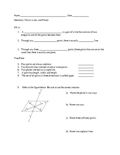 Points Lines And Planes Exercise 1 Worksheet Answer Key